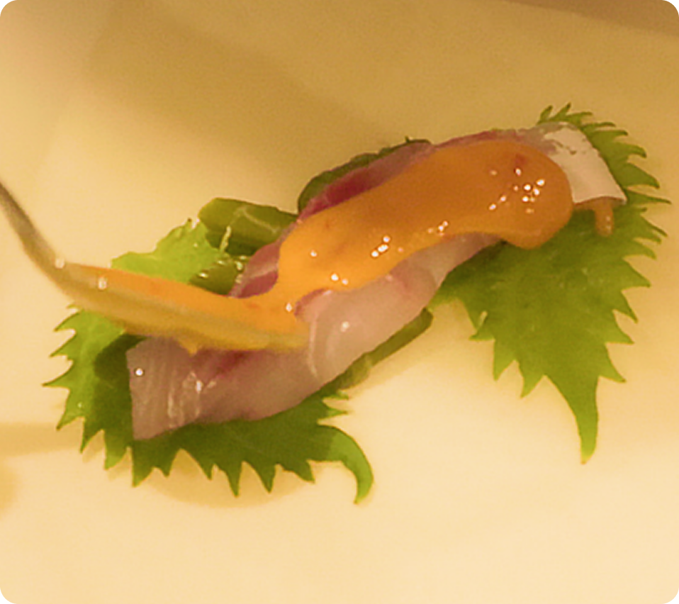 神戸沖で水揚げされる鮮度抜群で脂の乗った黒鯛、歯ごたえがアクセントのアスパラガス、親しみやすい香りを演出する大葉と特製のソースにしっかり絡まり、お子様からお年寄りまでやみつきになる味に仕上がっています!